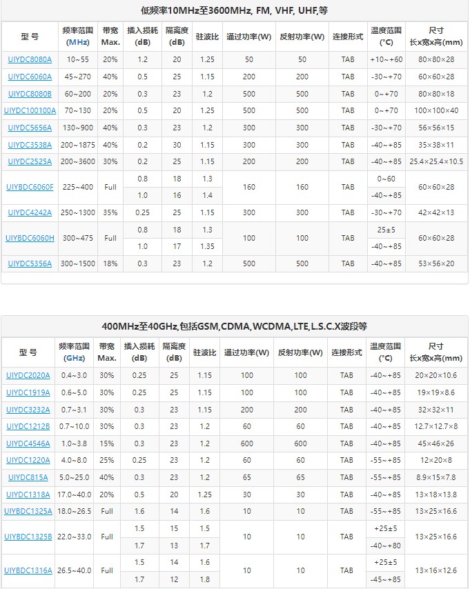 所涉及到产品频率、指标参数、功率、接头形式等可参考公司官网(uiyinc.com),欢迎咨询!
